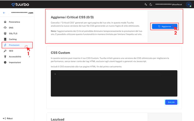 - Clicca su "Aggiorna" per rigenerare i Critical CSS.
